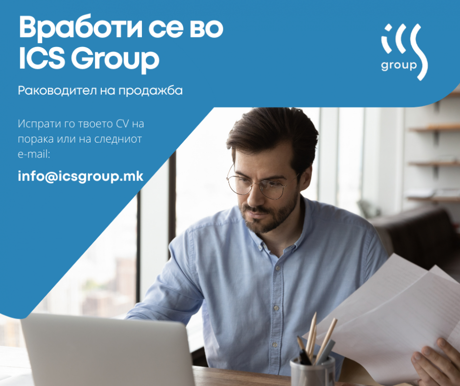 Работната позиција е во Скопје, со работно време од 08:00 – 16:00 часот, од понеделник до петок. Сите заинтересирани кандидати своето CV може да го испратат на следнава e-mail адреса ivona@icsgroup.mk