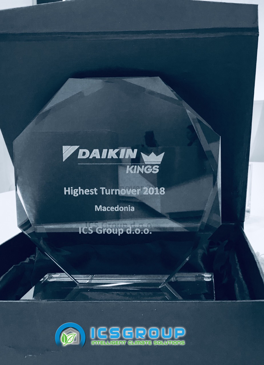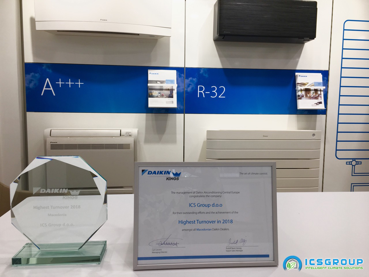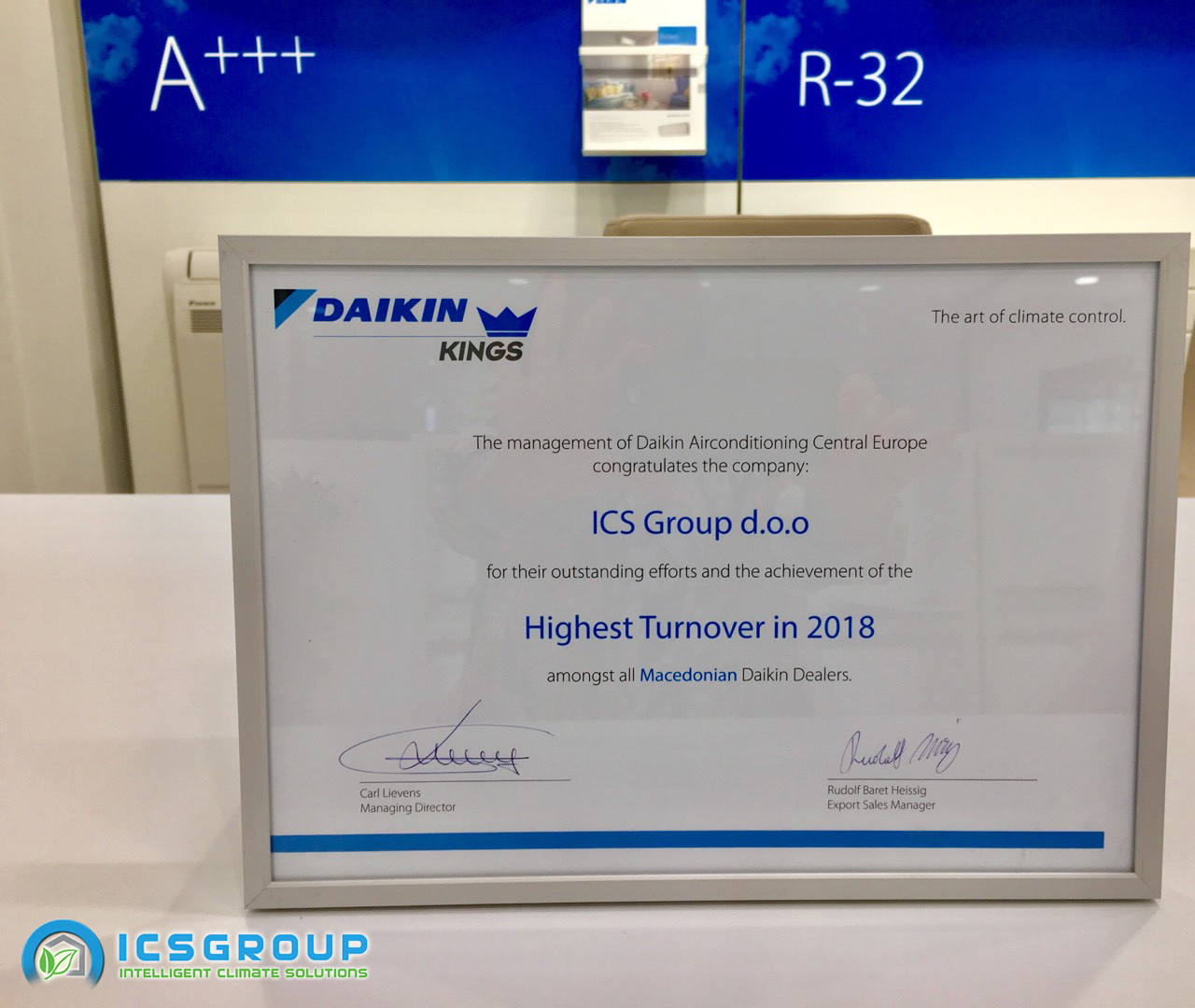 ИЦС ГРУП го доби новиот Сертификат “Daikin HIGHEST TURNOVER 2018“ за постигнат најголем успех, од сите дилери на Daikin во Македонија.