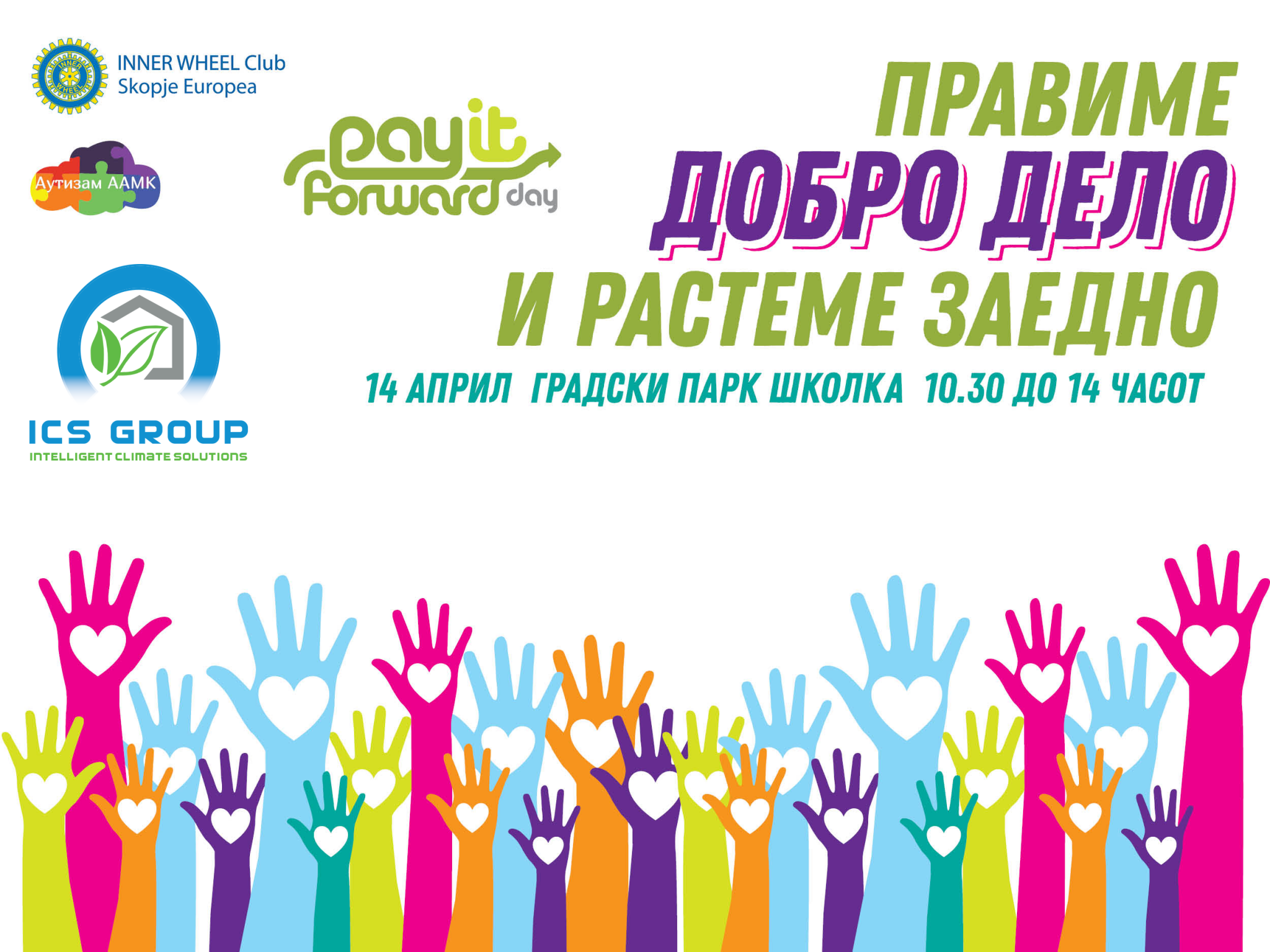 ИЦС Груп овластен партнер на DAIKIN за Македонија се приклучува на одбележувањето на денот за правење добри дела „Pay it Forward“, кој во организација на „Инер вил клуб Скопје Еуропеа“ и „Аутизам МК“ ќе се одржи на 14 април (недела) на Школка во Градскиот парк од 10:30 до 14:00 часот.