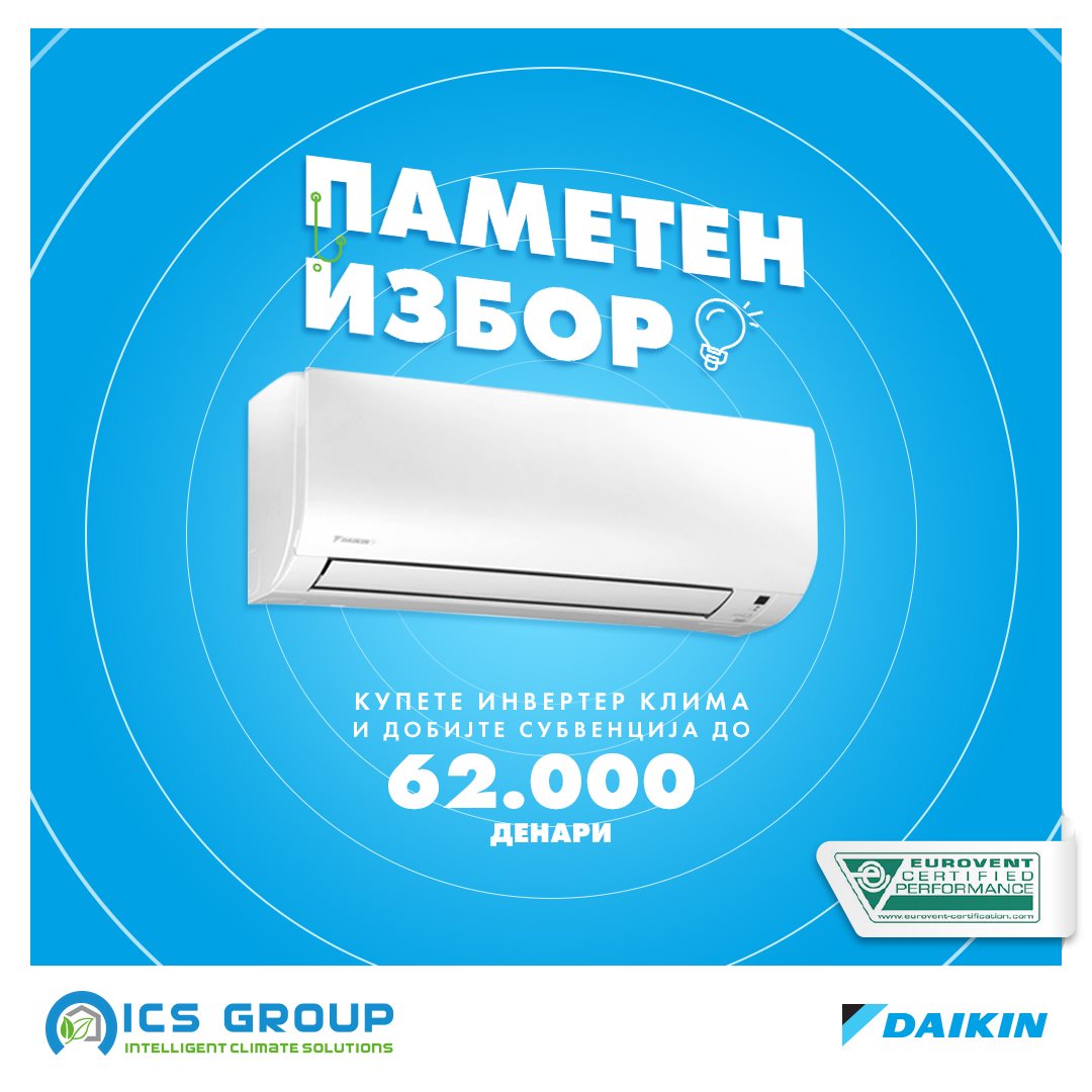 КУПИ ИНВЕРТЕР КЛИМА DAIKIN ОД ИЦС ГРУП И ЗАЕДНИЧКИ ДА АПЛИЦИРАМЕ ЗА 1000 ЕВРА СУБВЕНЦИИ ОД ГРАД СКОПЈЕ