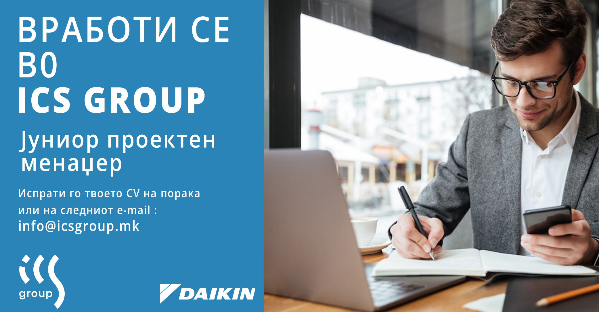ИЦС ГРУП ДОО – Скопје e приватна компанија,овластен партнер на Јапонскиот бренд DAIKIN за Македонија, специјализирана за проектирање,продажба и изведба на системи за греење, ладење, климатизација и вентилација. Во моментов поради проширување на тимот имаме потреба од спремен и одговорен профил за работната позиција: