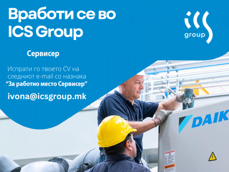 ИЦС ГРУП ДОО – Скопје e приватна компанија,овластен партнер на Јапонскиот бренд DAIKIN за Македонија, специјализирана за проектирање,продажба и изведба на системи за греење, ладење, климатизација и вентилација. Во моментов поради проширување на тимот имаме потреба од стручен, амбициозен и одговорен профил за работната позиција:
