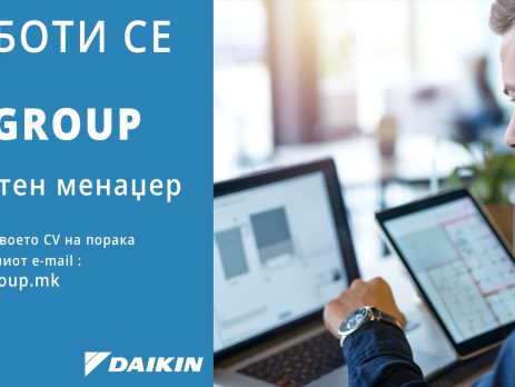 ИЦС ГРУП ДОО – Скопје e приватна компанија,овластен партнер на Јапонскиот бренд DAIKIN за Македонија, специјализирана за проектирање,продажба и изведба на системи за греење, ладење, климатизација и вентилација. Во моментов поради проширување на тимот имаме потреба од спремен и одговорен профил за работната позиција: Јуниор проектен менаџер Цел на работното место е: Планирање, организација на изведба и контрола на проекти од помал обем како и  асистирање на Проектниот менаџер (сениор)  во водењето на објекти од поголем обем од почеток до крајна […]