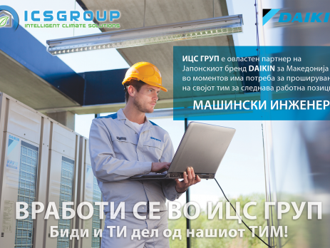 ИЦС ГРУП ДОО – Скопје е фирма, која врши проектирање, продажба и изведба на системи за греење, ладење, климатизација и вентилација, како и техничко-консултантски услуги. ИЦС ГРУП е овластен партнер на Јапонскиот бренд DAIKIN за Македонија и во моментов има потреба за проширување на својот тим за следнава работна позиција:   МАШИНСКИ ИНЖЕНЕР   Потребни квалификации: Машински факултет, но може да се земат во предвид и кандидати со друг технички факултет Co или без работно искуство Задолжително познавање на англиски јазик Работа на компјутер […]
