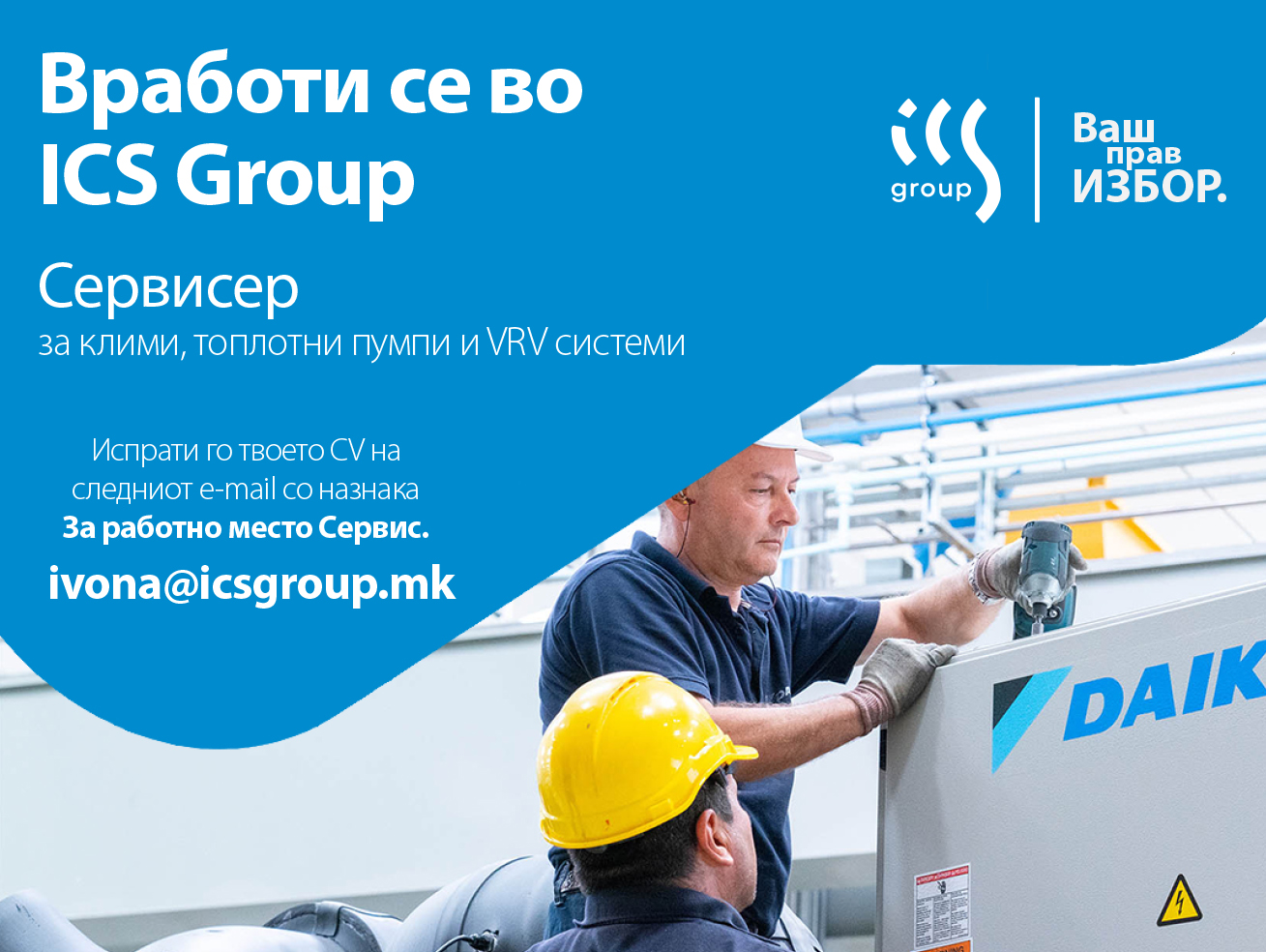 Сите заинтересирани кандидати своето CV може да го испратат на следнава e-mail адреса ivona@icsgroup.mk (со назнака за работно место Сервис).